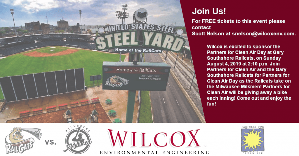 Wilcox is excited to sponsor the Partners for Clean Air Day at Gary Southshore Railcats, on Sunday August 4, 2019 at 2:10 p.m. Join Partners for Clean Air and the Gary Southshore Railcats for Partners for Clean Air Day as the Railcats take on the Milwaukee Milkmen! Partners for Clean Air will be giving away a bike each inning! Come out and enjoy the fun!